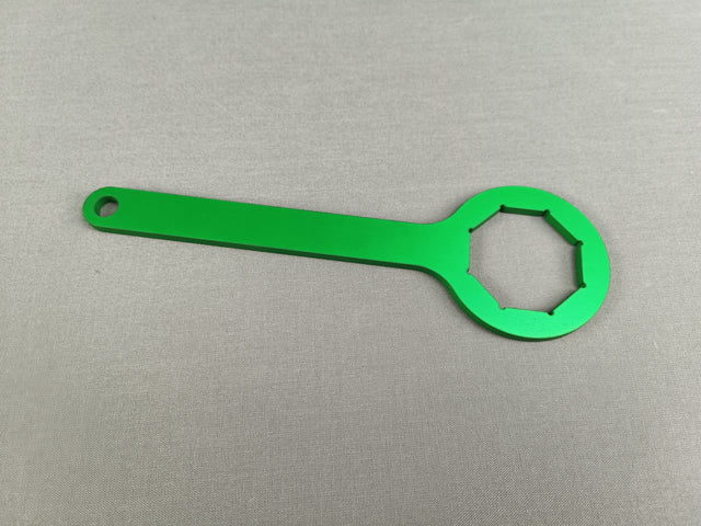 Clé 8 pans pour bouchon de fourche Kayaba Ø46mm en aluminium anodisé vert, marque KYB.