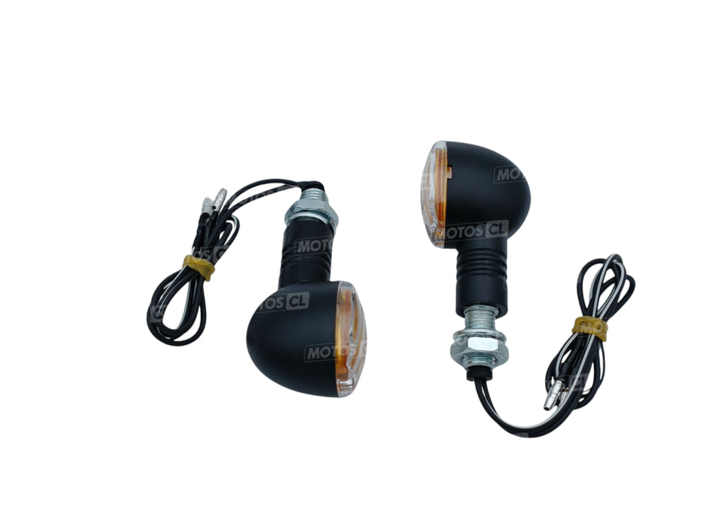 Clignotants Bihr rond noir universel, homologués, à ampoules 12V21W. Matière plastique. Montage à l'avant ou à l'arrière.