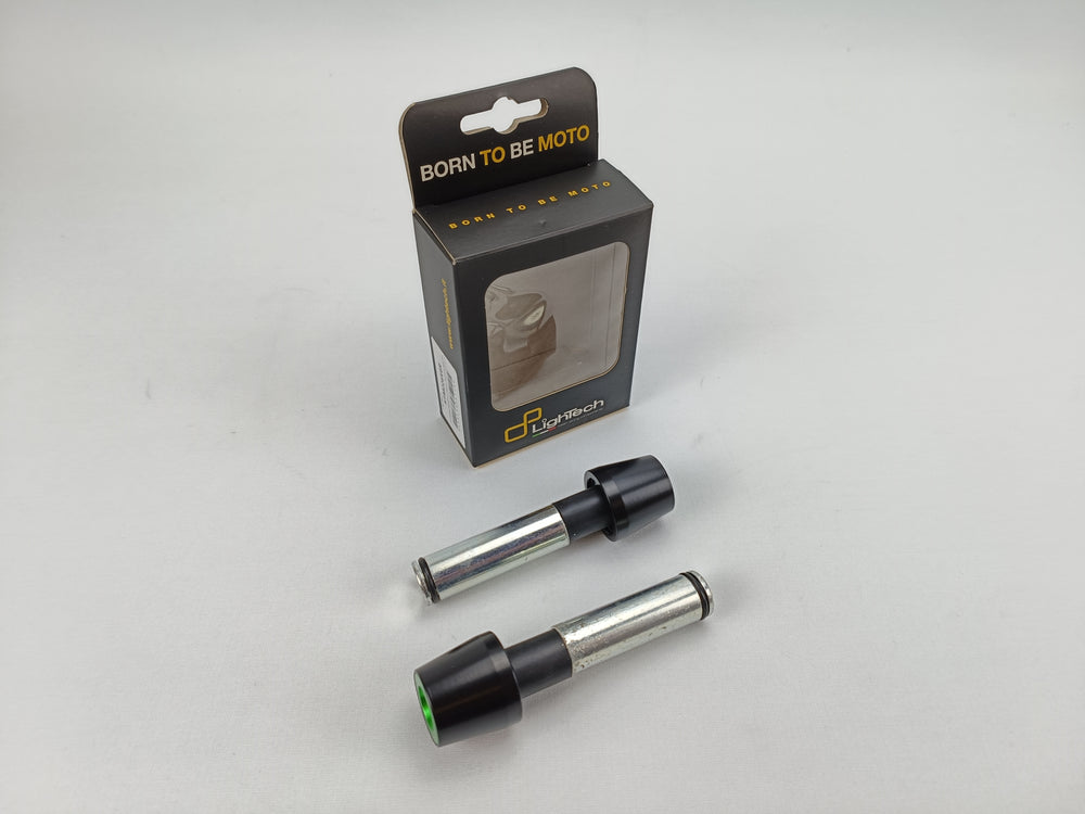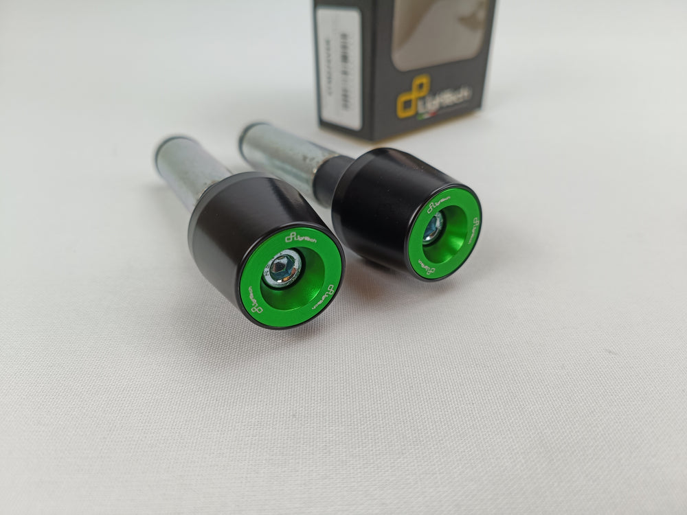 Embouts de guidon acier* époxy en noir et insert en aluminium anodisé vert, marque Lightech pour Kawasaki Z650.