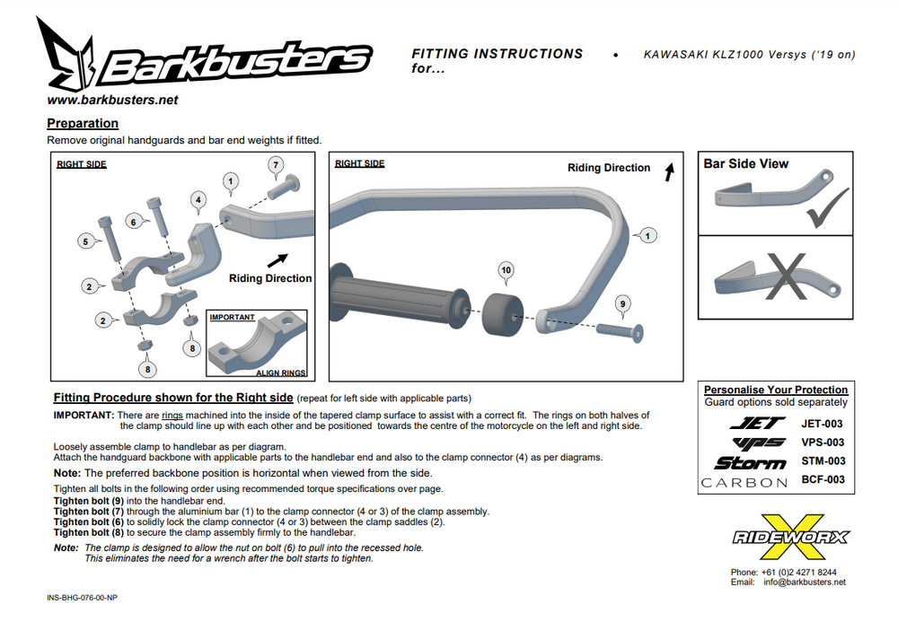 KIT DE MONTAGE PROTÈGE-MAINS BARKBUSTERS VERSYS 1000 2019 À 2022 KAWASAKI / BHG-076-00-NP