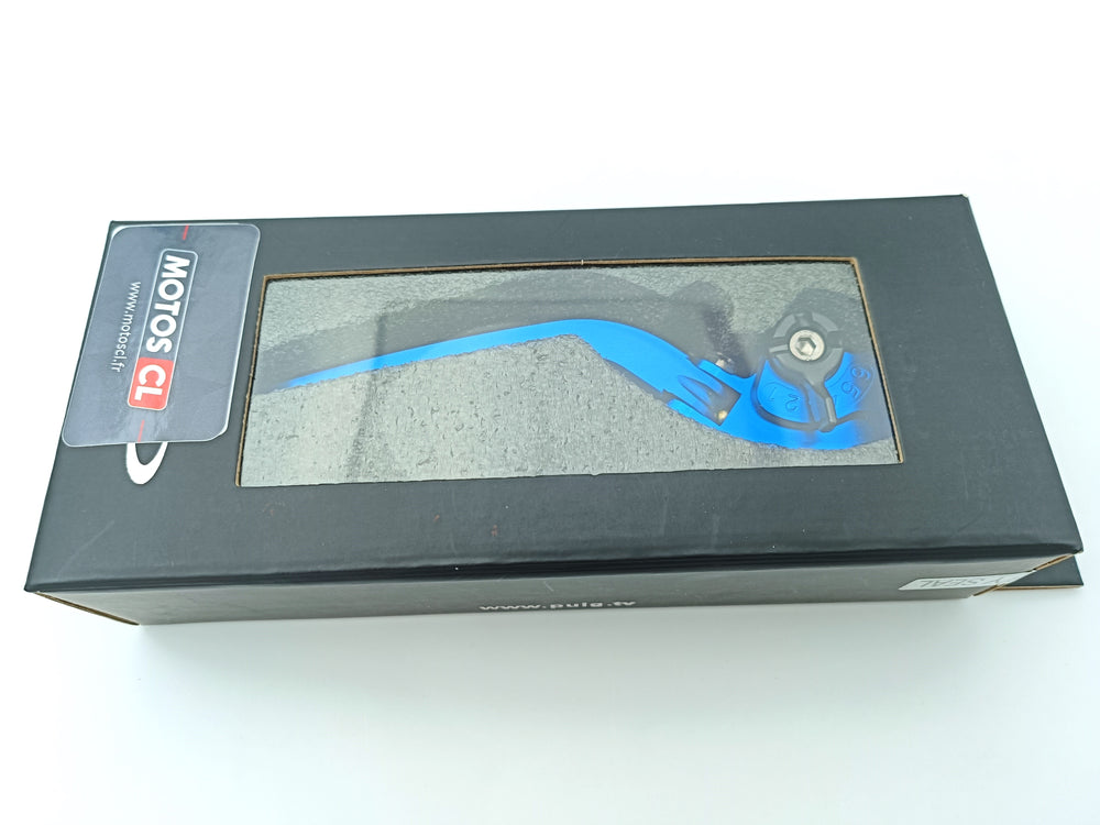 LEVIER DE FREIN PUIG 2.0 EN ALUMINIUM TAILLÉ MASSE LONG ARTICULÉ BLEU-NOIR MONTE SUR ADAPTATEUR PUIG / RP110AN