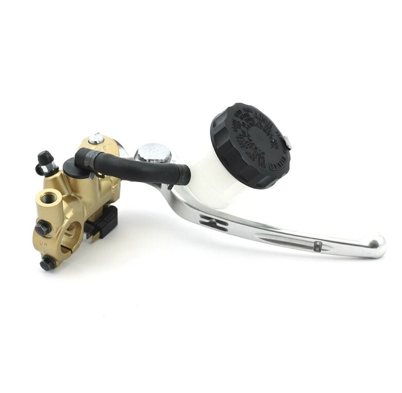 Maître-cylindre de frein avant radial Ø17mm avec bocal séparé, couleur or et levier alu, marque Nissin. Pour moto roadster, sportive, super-motard...
