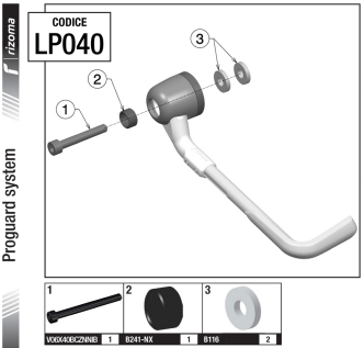 Livré avec un kit de fixation qui comprend une vis m6x40 et des entretoises (voir photo N°3), il sera nécessaire dans certains montages d'avoir besoin de kits de fixations spécifiques, voir liste application Rizoma. Exemple pour guidon creux RRLPR200B photo N°4, certain guidon bmw et kawasaki OEM RRLP305B photo N°5, certain guidon Yamaha OEM RRLP330B photo N°6...