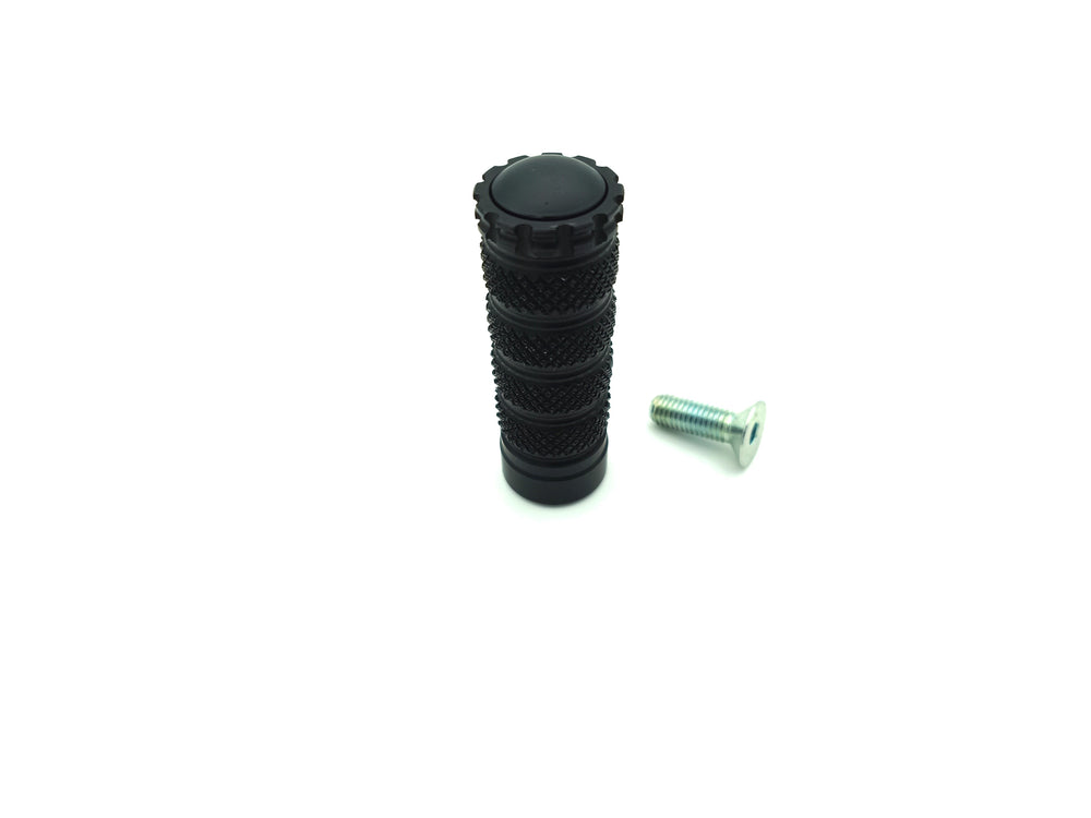 Repose pied en alu anodisé noir, avec embout plastique à l'extérieur, marque Lightech. Pièce de remplacement pour commandes reculées.
